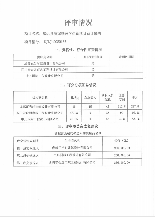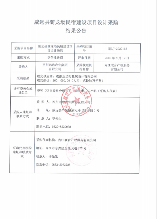 威远县骑龙坳民宿建设项目设计采购结果公告