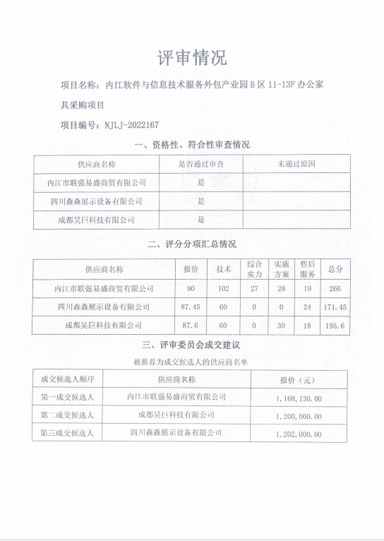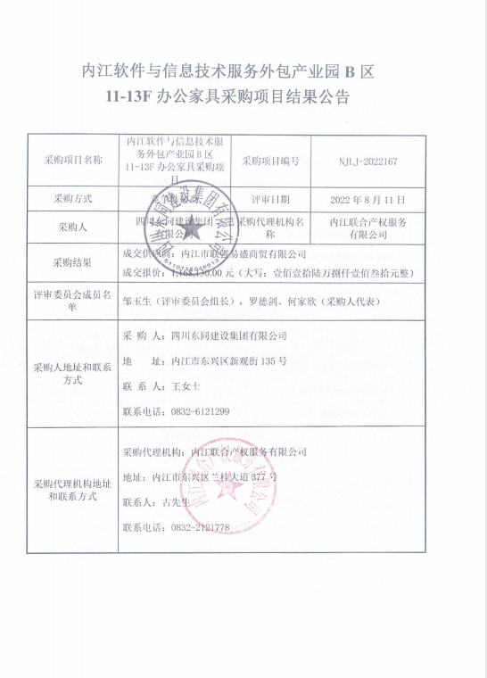 内江软件与信息技术服务外包产业园B区11-13F办公家具采购项目结果公告