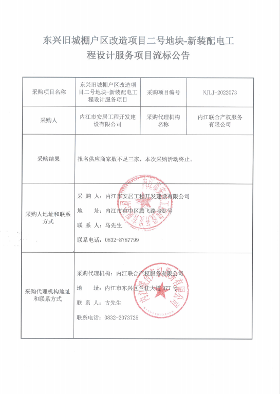 东兴旧城棚户区改造项目二号地块-新装配电工程设计服务项目流标公告