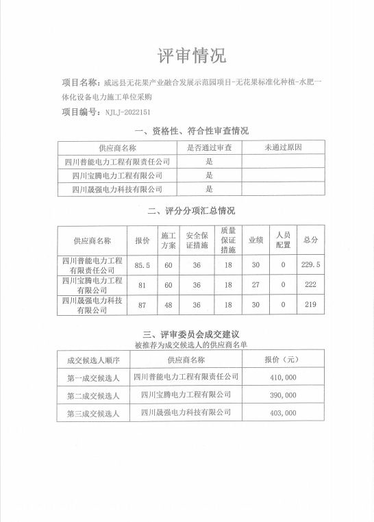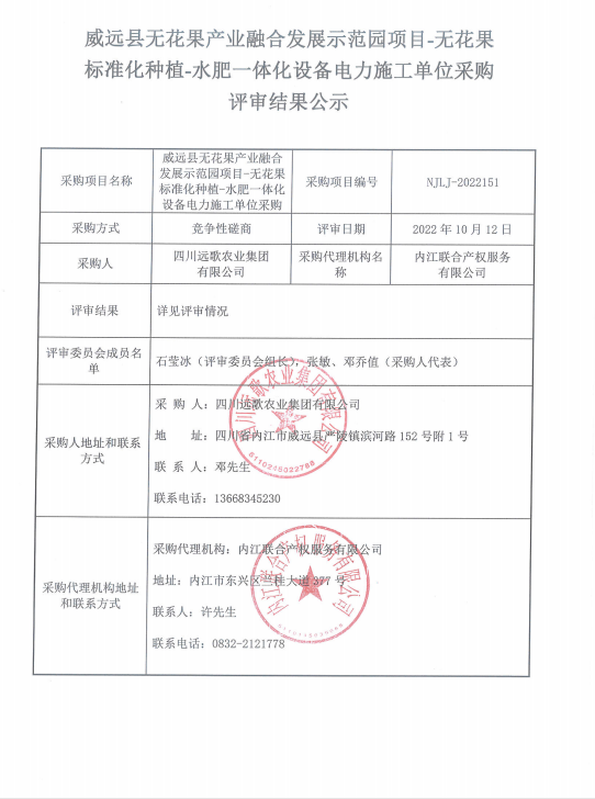 威远县无花果产业融合发展示范园项目-无花果标准化种植-水肥一体化设备电力施工单位采购结果公示