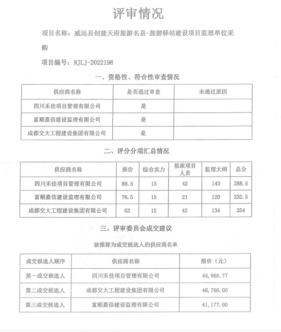威远县创建天府旅游名县-旅游驿站建设项目监理单位采购结果公示