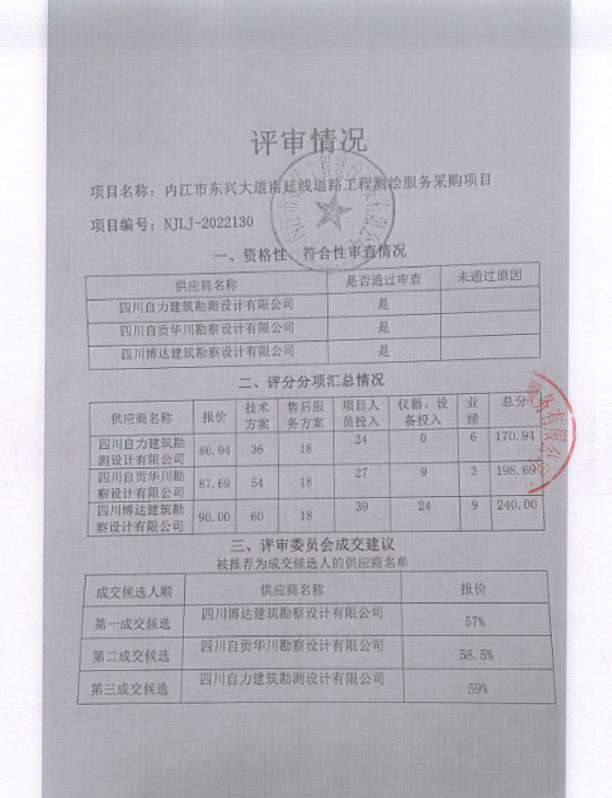 内江市东兴大道南延线道路工程测绘服务采购项目结果公告