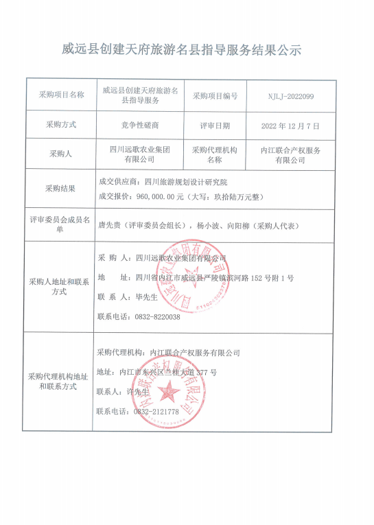 内江市绿禾农贸有限责任公司大千路第二农贸市场新建电梯采购项目结果公告