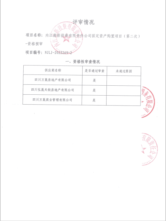 内江高新投资有限责任公司固定资产购置项目(第二次)资格预审结果公告