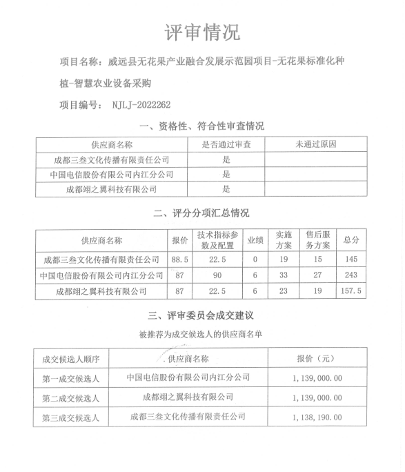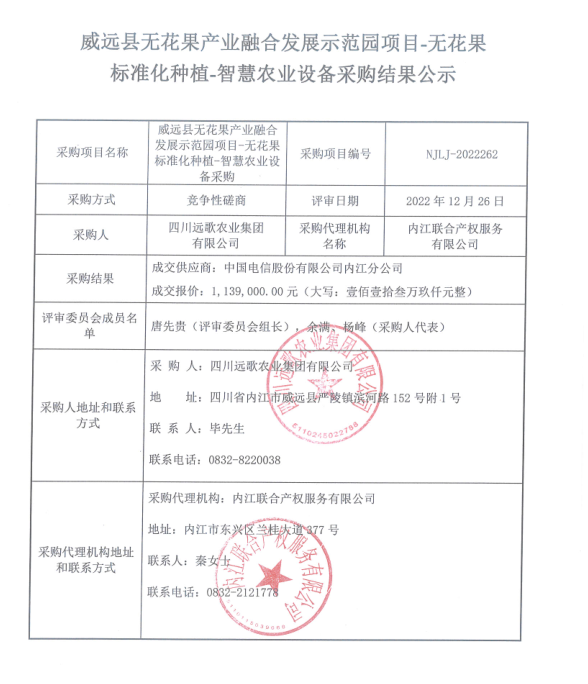 威远县无花果产业融合发展示范园项目-无花果标准化种植-智慧农业设备采购结果公示