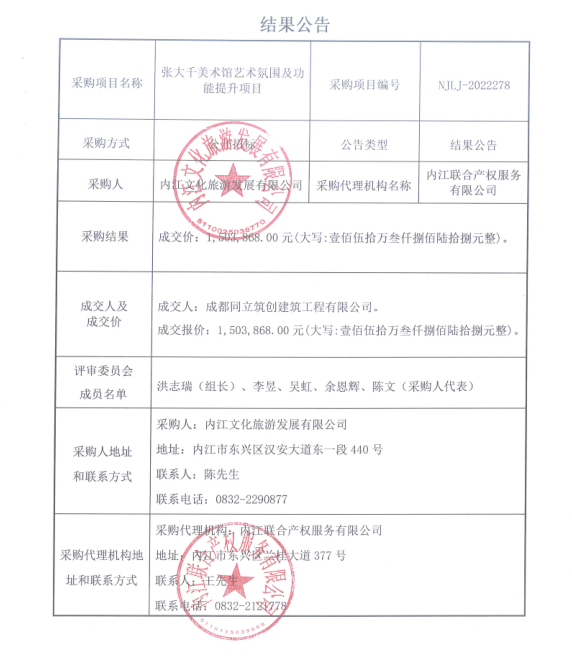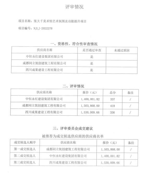 张大千美术馆艺术氛围及功能提升项目结果公告