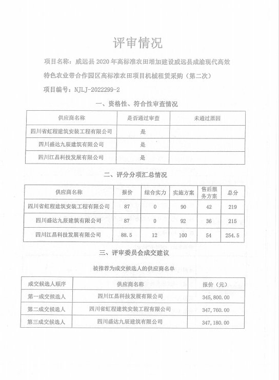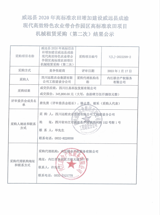 威远县2020年高标准农田增加建设威远县成渝现代高效特色农业带合作园区高标准农田项目机械租赁采购(第二次)结果公示