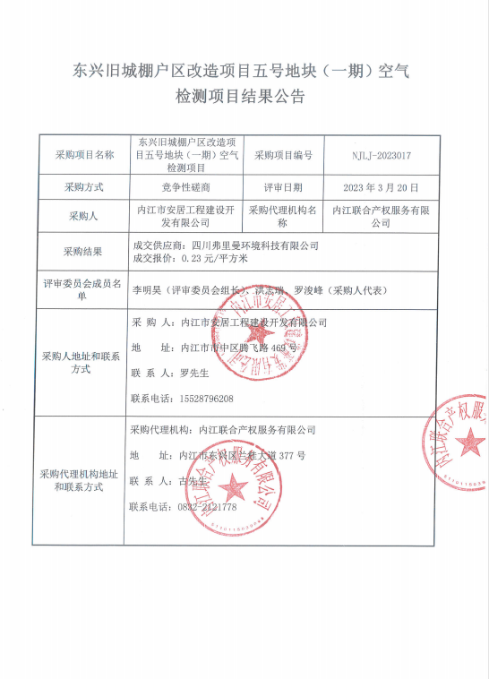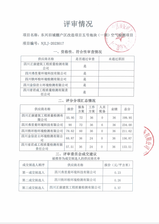 东兴旧城棚户区改造项目五号地块(一期)空气检测项目结果公告