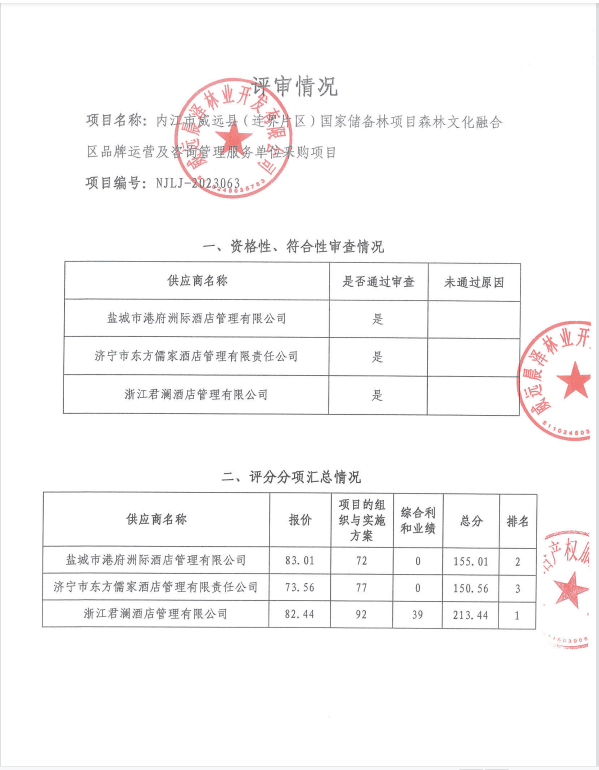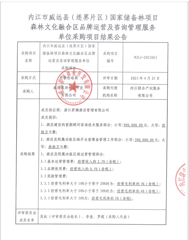 内江市威远县(连界片区)国家储备林项目森林文化融合区品牌运营及咨询管理服务单位采购项目结果公告
