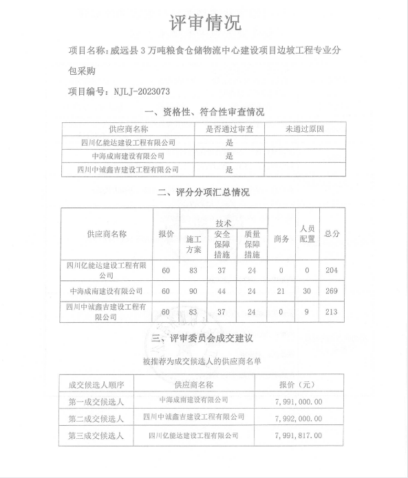 威远县3万吨粮食仓储物流中心建设项目边坡工程专业分包采购结果公示