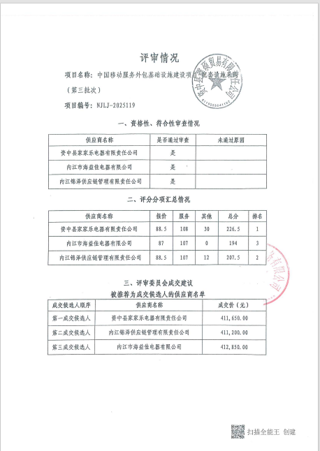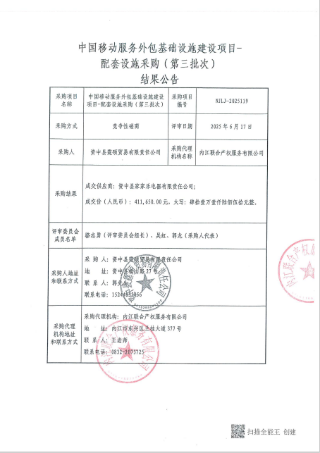 中国移动服务外包基础设施建设项目-配套设施采购(第三批次)结果公告